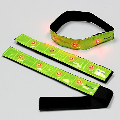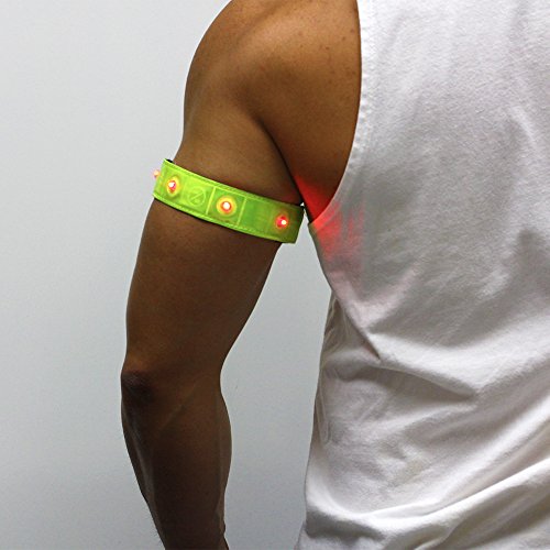 ? These brand new florescent yellow/green reflective arm/leg bands also have 4 built-in blinking red LED lights. Batteries are included with your purchase. The battery operated lights and reflective strip will make any runner and/or cyclist HIGHLY visible to others.