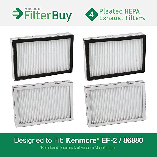 4 - Kenmore EF-2 86880 Exhaust Vacuum HEPA Filters. Designed by FilterBuy to replace Sears Kenmore Part # 20-86880 (86880), 40320, EF2, 610445. Also replaces Panasonic MC-V194H.