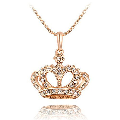 -. Title : Women's Queen Crystals Imperial Crown Pendant Rose-Gold Plated Necklace Chain