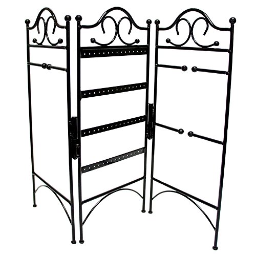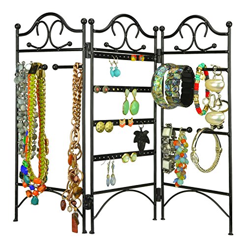 This 3-panel folding screen style jewelry organizer is the perfect way to hang and display all your precious earrings, bracelets and necklaces. This organizer stand brings exquisite style and keeps your jewelry tangle-free and easy to find.