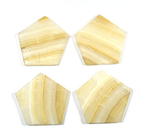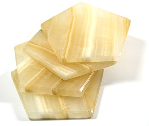 Jupiter Amber Aragonite Stone Coasters, Pentagonal, 3 3/4" wide, Set of 4 - The Artisan Mined Series by hBAR