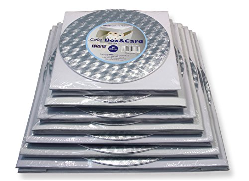 Studio : PME Sugarcraft Publisher : PME Sugarcraft Binding : Kitchen Product Description Package your cakes and ensure minimum damage potential in transit with this cake board and cake box. The cake board (cake card) is made of strong coated cardboard wrapped in metallic silver foil for a grease and moisture-resistant finish. The board has smoothly-finished edges without visible folds, and is finished on the underside with white paper for a premium appearance. The cake box delivers a professional presentation, stores flat, and is easy to assemble by folding and inserting the corner tabs. Pack of 2: cake board and cake box Size: 12" Dimensions: board: 12"Dia × 3/16"Thick; box: 12"L × 12"W × 6"H Materials: Foil-covered corrugated cardboard cake board and cardboard box Product of China 0