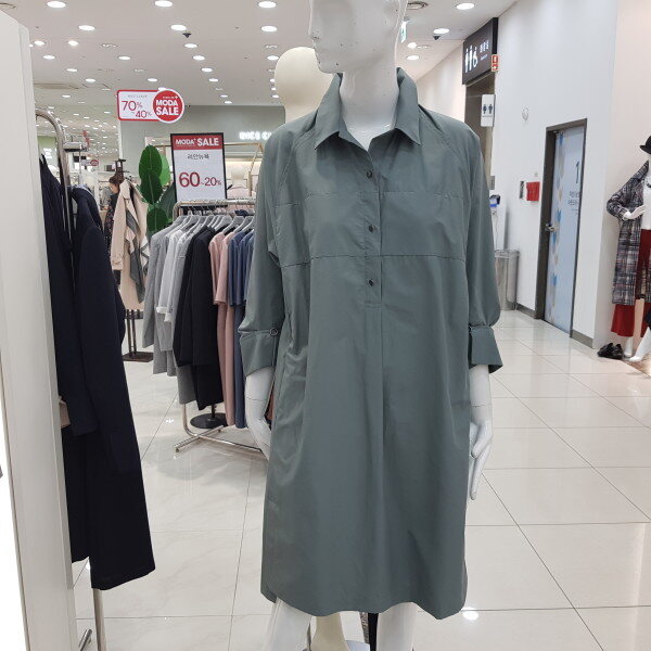 셔츠형박스원피스.단추는윗부분만 있고 허리를잡아입으시면 좀더 슬림한느낌입니다.박시하게 끈을빼고입으셔도 예쁩니다~