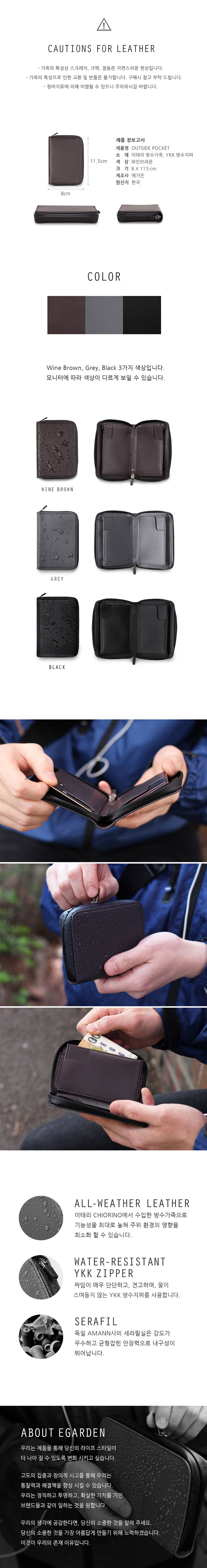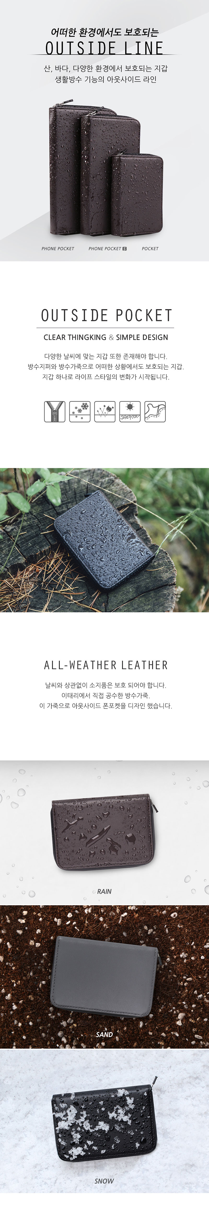 방수지퍼와 방수가죽으로 어떠한 상황에서도 보호되는 지갑.