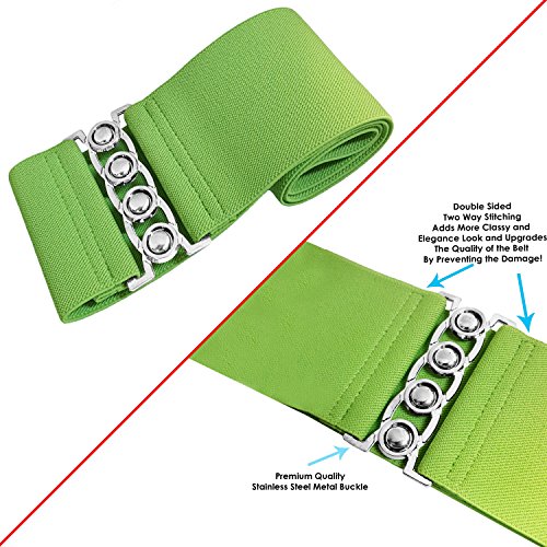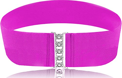 LUNA Womens Fashion Elastic Cinch Belt / Buckle. Features 2" / 3" / 4" Buckle with Stretchable Strap to Fit All Sizes. Unstretched (28") to Full Stretch of (38") + Plus Sizes Available for Even Further Stretch! Great to Trim Your Waist Line and Give a Hint to Your Style. A Must Have Item!