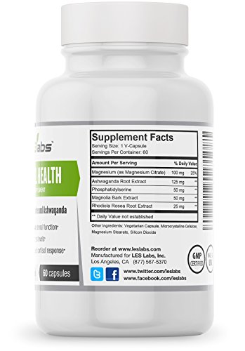 -. Binding : Health and Beauty -. Brand : LES Labs -. EAN : 0091037958044 -. Feature : SUPPORTS HEALTHY ADRENAL FUNCTION. Drug-free formula supports adrenal function and helps to control cortisol levels. / PROMOTES HEALTHY CORTISOL LEVELS. Formulated to promote balanced cortisol response, a powerful hormone released during times of stress. / SUPPORTS RELAXATION AND HELPS REDUCE STRESS. Ashwagandha and rhodiola extracts help promote relaxation. Included magnesium provides an added calming effect. / NATURAL INGREDIENTS. Natural formula including phosphatidylserine, magnesium, ashwagandha, magnolia, and rhodiola root extract. / 1 CAPSULE DAILY. 100% MONEY-BACK GUARANTEE. Try Cortisol Health and see how it works for you. All LES Labs supplements include a 60-day money-back guarantee. Our supplements are manufactured in the USA with the highest-quality ingredients from around the world. -. IsAdultProduct : 0 -. Label : LES Labs -. Manufacturer : LES Labs -. MPN : LES Labs -. PartNumber : LES Labs -. ProductGroup : Health and Beauty -. ProductTypeName : HEALTH_PERSONAL_CARE -. Publisher : LES Labs -. Studio : LES Labs -. Title : Cortisol Health (60 Capsules) • Supports Adrenal Function • Helps Reduce Stress • Balanced Cortisol Response • With Phosphatidylserine, Magnesium & Ashwagandha • 100% Money-Back Guarantee -. UPC : 091037958044