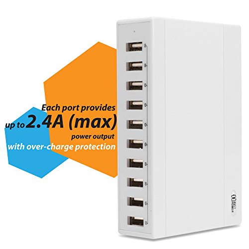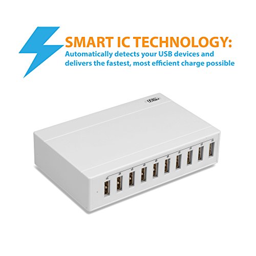 ✔SMART IC TECHNOLOGY: Automatically detects your USB devices and delivers the fastest, most efficient charge possible. Each of the 10 ports provides up to 2.4A maximum power output