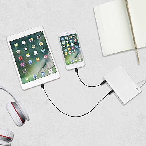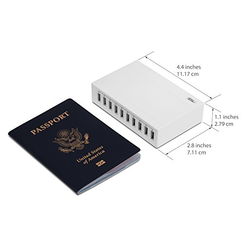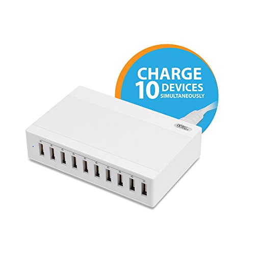 ✔10 PORT USB CHARGER: Steadily charge up to 10 smartphones, tablets, and other devices simultaneously with a 60W total power output