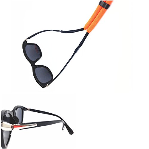 - Our floating sunglass retainers are designed with comfort and function in mind. They are long and adjustable to be sure to go over any head size and stay secure. The outside is nylon material and the inside is filled with foam for ultimate floatation. Strap size: 12” x 0.5”, Silicone tube size: 2.25” x 0.2” Best for glasses with temples (side arms) between 0.24” – 0.52”.