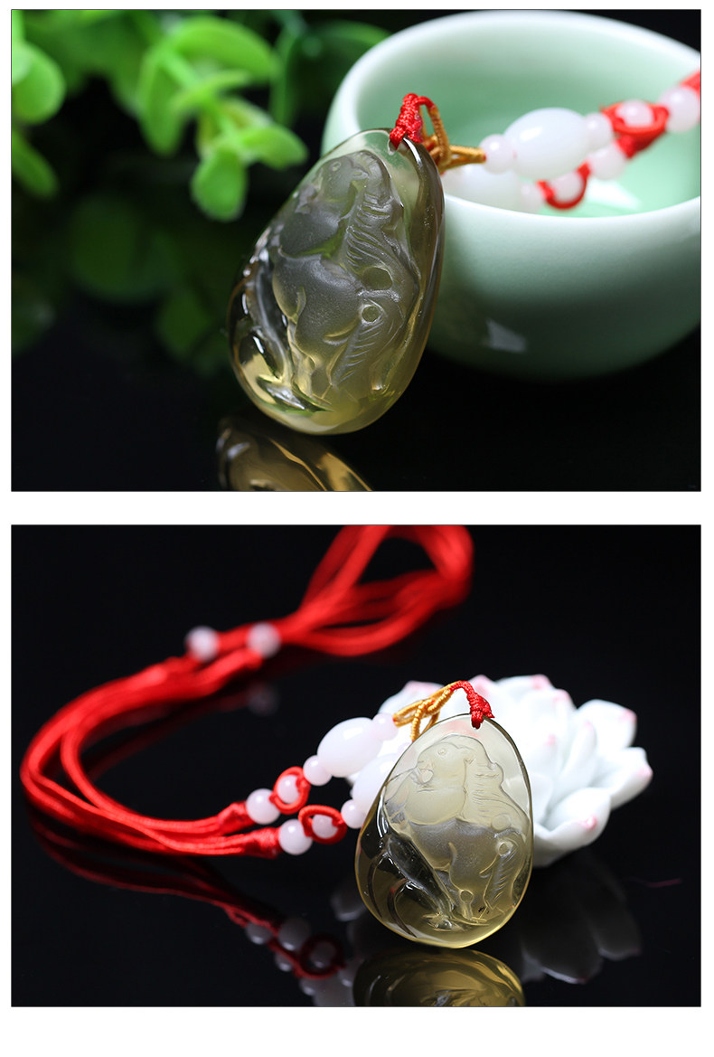 开光天然黄水晶十二生肖马神骏登峰吊坠吉祥物