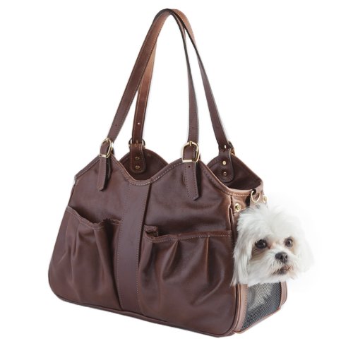-. Feature : Airline approved, designer inspired fashion handbag style pet carrier, all leather / Adjustable straps, 2 open exterior pockets on front and 1 secure side zipper pocket on back / Available in 3 sizes, for dogs up to 15 pounds, Made in the USA / Roll up side window with P.R.Ivacy flap, top zip entry, mesh ventilation panel on top and both ends, interior adjustable safety strap / 17-inch long, 7-inch wide, 9-inch high