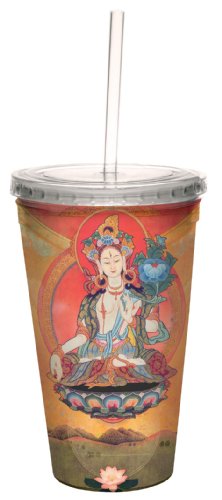 Tree-Free Greetings 80557 Buddhist Goddess Tara's Blessing Art by Duirwaigh Gallery Artful Traveler Double-Walled Cool Cup with Straw, 16-Ounce