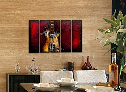 -. Binding : Kitchen -. Brand : Wieco Art -. Feature : 100% hand-painted high quality oil paintings by professional artist. / Stretched and framed, ready to hang. Edges are painted and surface is covered with clear removable film to protect the painting. / Painting size: 16x48inchx5pcs(40x120cmx5pcs) / Each piece is custom made. Actual painting may be slightly different from the product image. / Packed in Carton Box. Gift card is also available upon request. -. Label : Wieco Art -. Manufacturer : Wieco Art -. ProductGroup : Home -. ProductTypeName : HOME -. Publisher : Wieco Art -. Studio : Wieco Art -. Title : Wieco Art-Guitar Passion Framed Abstract Oil Paintings on Canvas 100% hand-painted Modern Canvas Wall Art Decor 5 pcs/set