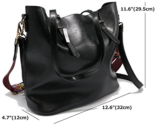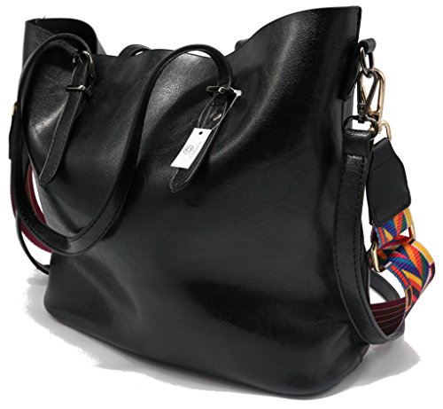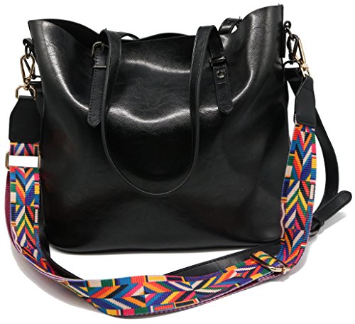 Product Description This top handle bag is made by high quality cowhide genuine leather. It is very durable. The bag has a removable, adjustable shoulder strap, and removable multicolor guitar style shoulder strap. The Interior Features: The bag has two zipper pockets and two opened pockets. It is very stylish and comfortable for daily use, perfect for almost any occasions. It is very simple design, large capacity, and fashionable. We dedicate to offer excellent quality products in friendly price.