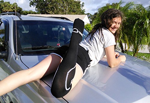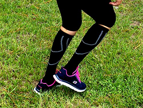 - PERFECT COMPRESSION SOCKS FOR WOMEN/MEN : Our compression socks are made with a comfortable high quality blend. Graduated Compression promotes better blood circulation as strongest compression happens at the ankle, gradually decreases moving up the leg. Promotes healthy circulation, blood flow easily, comfortably without constriction or numbing of legs / feet. SILVER YARN ANTI/BACTERIA FABRIC : Our compression socks whith silver threads have properties ANTI ODOR / ANTI STATIC even with longer use. Silver threads give our socks anti microbial, odor eliminating. Helps regulate temperature by keeping you warm when cold, cool when hot. IDEAL FOR SPORTS / DAILY WEAR : Moderate Graduated Compression 15/20 mmHg recommended for all day, everyday wear. Perfect for athletes, for running, exercise , reduces muscle fatigue, especially if on your feet for long periods of time, or travelling. Unisex Compression stocking use to prevent cramping muscles. PROVIDES SIGNIFICANT RELIEF FOR : aching leg, reduces swelling, leg pain, numbness, circulatory problems, reduces muscle fatigue. Perfect for anyone who finds themselves in a standing or sedentary position for long hours. Promotes circulation, minimizes swelling. Moderate Compression Socks perfect for those anyone on their feet all day, for teachers, nurses, doctors, pregnant women, travelers, for people with problems VARICOSE , THROMBOSIS. PERFECT QUALITY: Seamless design helps avoid chafing for ultimate comfort, seamless toe closure with reinforced toe, heel. Experience comfortable compression therapy anywhere to aid in the prevention of blood clots, help reduce the effects of Lymphedema.