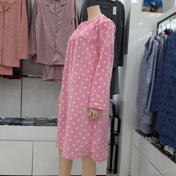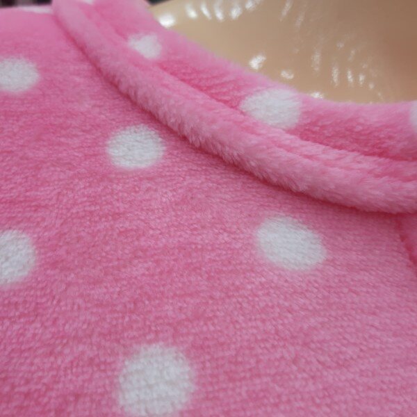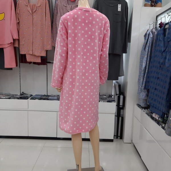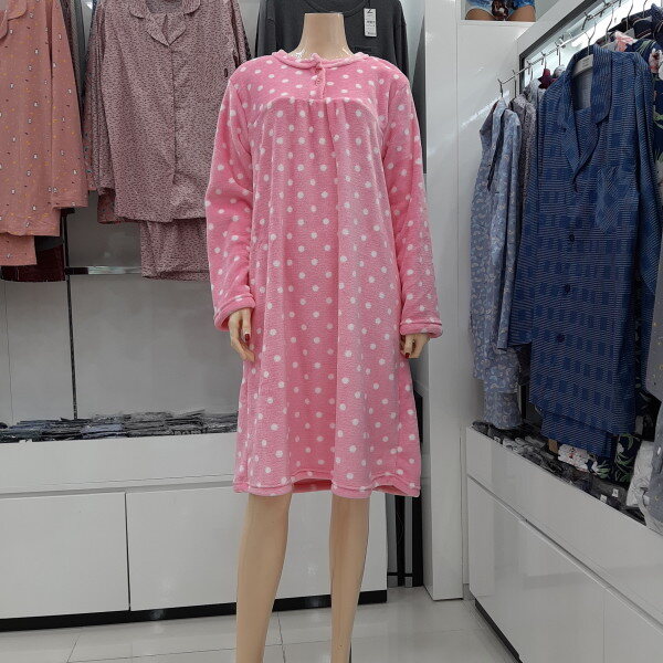 화사한 핑크색바탕에 흰색도트가 깜찍한 가볍고 포근한 원피스입니다