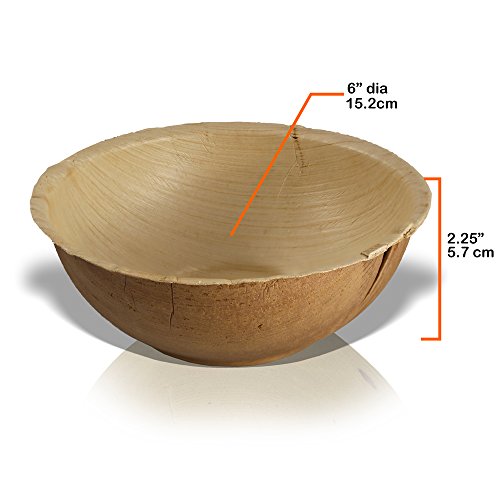 Disposable Eco Palm Paper Bowls: Round Compostable Biodegradable Heavy Duty Small Soup Salad Hors D’oeuvres Appetizer & Dessert Party Bowl - Comparable to Bamboo Fiber Plant Based Dishware: 25 Pack