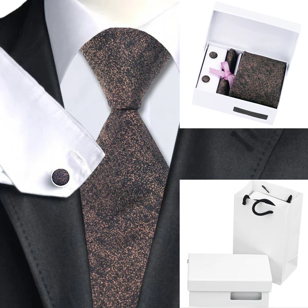 | [해외]남성 실크 넥타이 브라운 참신 B-1120 넥타이 손수건 커프스 단추 선물 상자 가방 세트 인기 넥타이 남성 웨딩 비즈니스 망 '선물 |