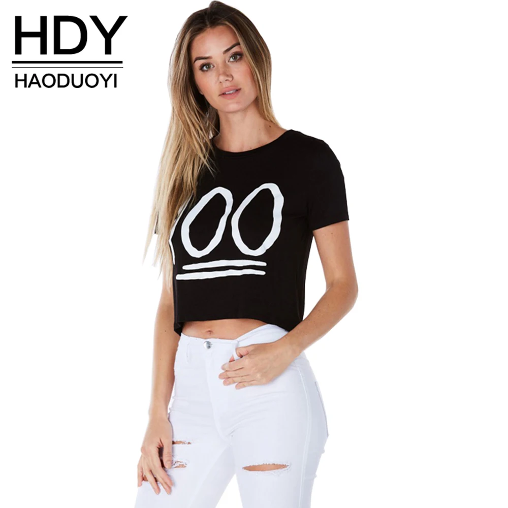| HDY Haoduoyi Letter Print Fashion Women T-shirt Solid Black O Neck Crop Tops For Women Classic Boyfriend Basic Slim Casual Tops | |||||||||||||||||||||||||||||||||||||||
