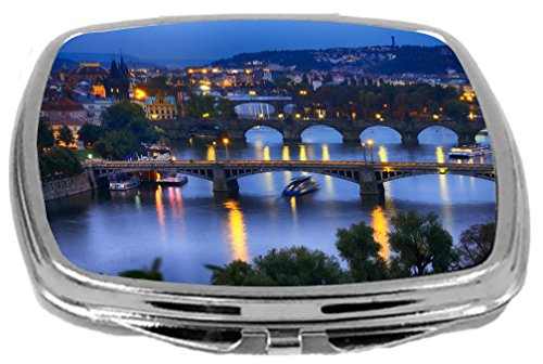 Rikki Knight Prague at Night Bridge on River Design Compact Mirror, 17 Ounce