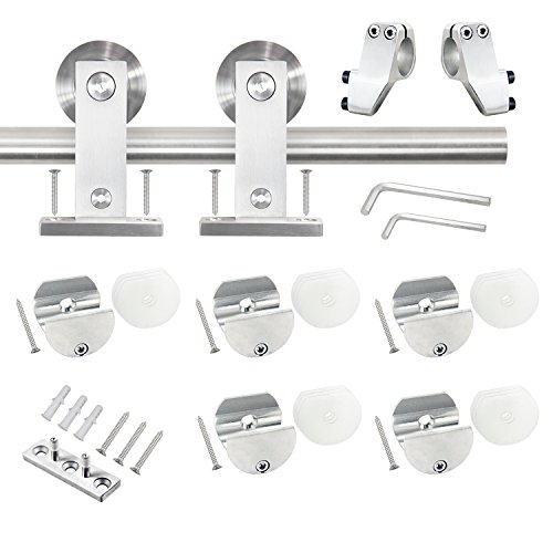 SMARTSTANDARD 6.6 FT Top Mount Stainless Steel Sliding Wood Door Hardware (Stainless Steel)(1 x 6.6 Foot Rail)
