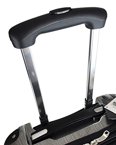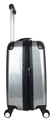 -. Feature : Color: Black and Silver/ Pattern: Solid Silver / Material: Polycarbonate / Carry-On: 20" H (include wheel) x 15" L x 10" W (+2" Expandable) / Carry-On Weight: 6.8 lbs / Measurement from ground to top of handle (with handle fully extended): 39"