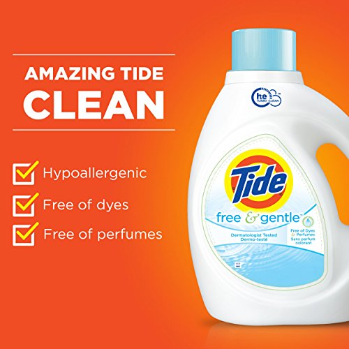 -. Binding : Health and Beauty -. Brand : Tide -. Feature : It's made with no dyes or perfumes and is dermatologist tested to provide your fabrics with a great clean that's gentle on your skin. / Specially designed for HE machines - #1 recommended by washer manufacturers1 (1based on co-marketing agreements) / Tide Free & Gentle will work great on heavily soiled clothes. / Part of the trusted Tide family of products that give you a consistent clean, load after load -. IsAdultProduct : 0 -. Label : P&G -. Manufacturer : P&G -. NumberOfItems : 2 -. PackageQuantity : 1 -. ProductGroup : Health and Beauty -. ProductTypeName : HEALTH_PERSONAL_CARE -. Publisher : P&G -. ReleaseDate : 2016-01-27 -. Size : 50 oz (Pack of 2) -. Studio : P&G -. Title : Tide Free HE Liquid Laundry Detergent, 50 oz (Pack of 2)