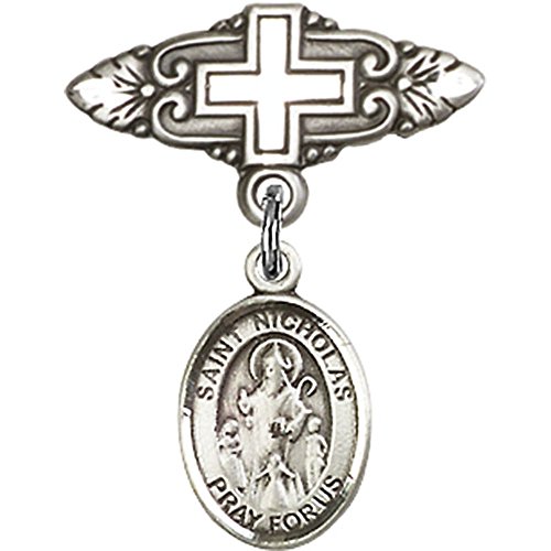 Sterling Silver Baby Badge with St. Nicholas Charm and Badge Pin with Cross St. Nicholas is the Patron Saint of Bakers/Brides/Children All Bliss products are 100% handmade in the United States at every stage of production, and come with a lifetime guarantee.