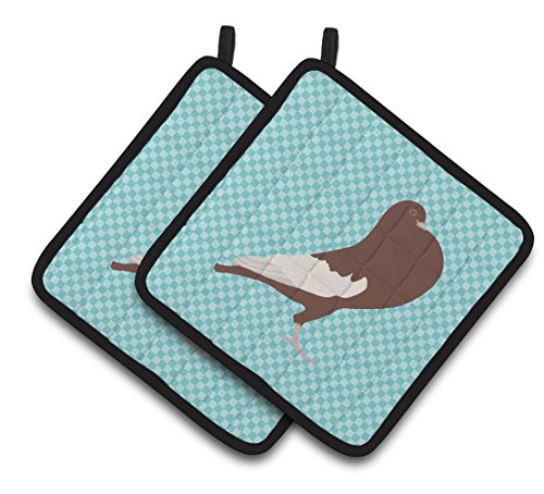 Caroline's Treasures BB8128PTHD English Pouter Pigeon Blue Check Decorated Pot Holder, 7.5" x 7.5", Multicolor