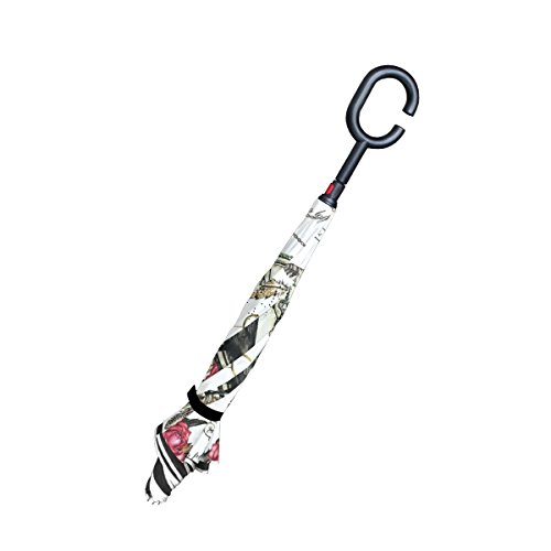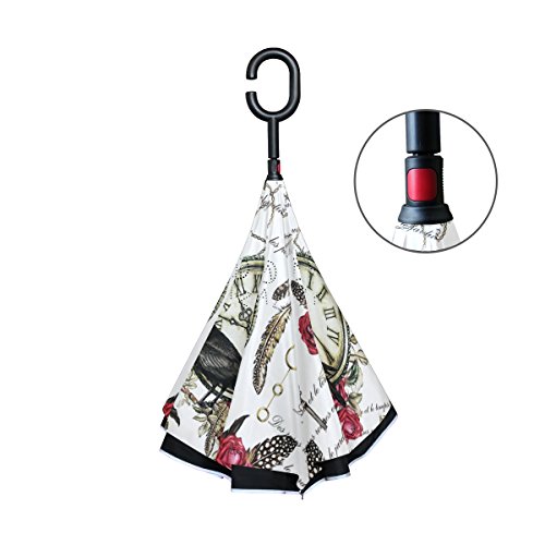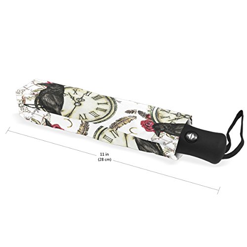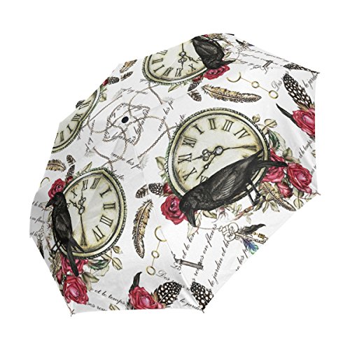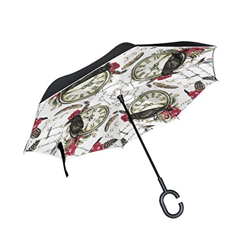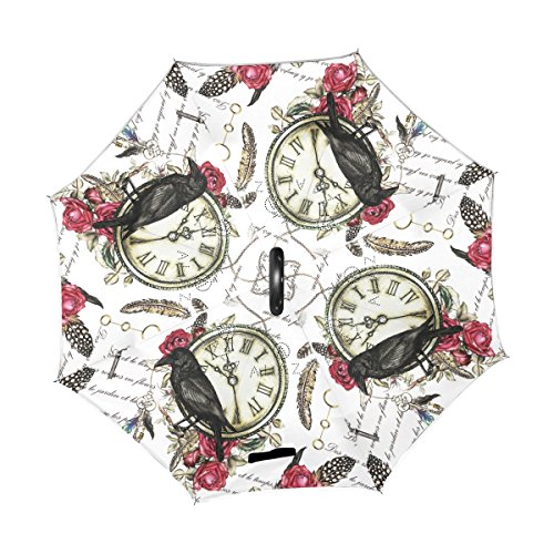 -. Title : Black Crow Red Rose and Vintage Clock Feather Double Layer O Shape Handle Reverse Umbrella Windproof UV Protection Portable Inverted Umbrella Travel Umbrella for Women and Men