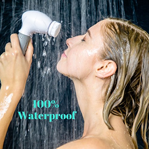 - 100% WATERPROOF: Put an end to running out of the shower to cleanse your face, no more water splashing all over. With GLOWING CARE WATERPROOF FACIAL BRUSH you can now do an all body cleansing right in the shower. Powered by 4 AA batteries (not included).