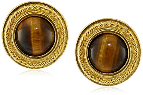 Gold-tone earrings with tiger eye set in roped bezel. Statement earrings that conjure subtle Earth tone colors that capture the essence of Venice that reminisce the cool weather of the iconic picturesque scenery.