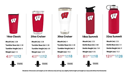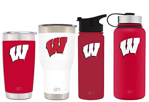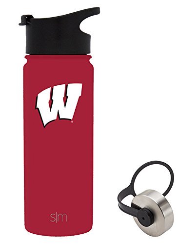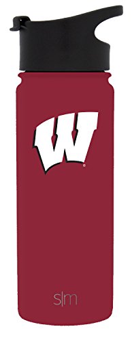 Simple Modern 18oz Summit Water Bottle - Wisconsin Badgers Vacuum Insulated 18/8 Stainless Steel Travel Mug - Wisconsin