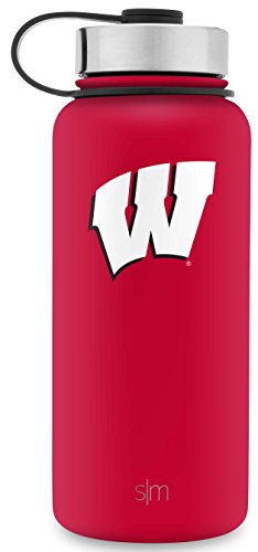 Simple Modern 32oz Summit Water Bottle - Wisconsin Badgers Vacuum Insulated 18/8 Stainless Steel Travel Mug - Wisconsin