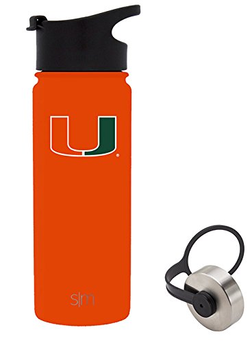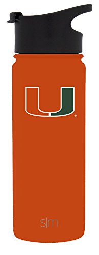 Simple Modern 18oz Summit Water Bottle - Miami Hurricanes Vacuum Insulated 18/8 Stainless Steel Travel Mug - Miami