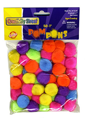 Studio : Chenille Kraft Co Publisher : Chenille Kraft Co Binding : Toy Product Description The Creativity Street Pom Pons 50-Piece x 1 Inch, Hot Assorted Colors are great for jewelry, animals, collage kits and more. These crush resistant pom pons add shape, texture and dimension to any art or craft project. These soft and fuzzy pom pons will texturize crafting projects, gifts, and other various creations while adding colors and uniqueness. Let children's imaginations and senses run wild with these pom pons through sight with colors and touch with the soft texture of these pom pons. Pacon offers customers an extensive line of arts and crafts products, strengthening its ability to be a single-source supplier for educational aids, paper products and arts and crafts. 0