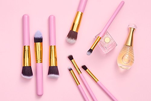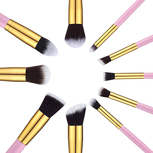 Premium 10 Makeup Brush Set Kit,Professional Woman Cosmetics Basic 10 Pieces Travel Beauty Brushes,Angled Flat,Contour,Face,Eyeliner,Shadow,Blending...