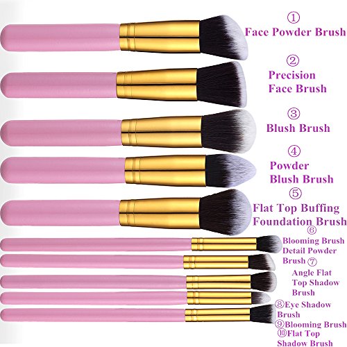 - √ PROFESSIONAL KIT WITH 10 MAKEUP BRUSHES:SWEETF Makeup Brushes provides assortment of makeup brushes - Kabuki, Foundation, & EyeShadow Brushes; Lip Liner, Blush & Powder Brushes.