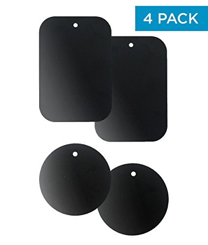 Mount Metal Plates with Adhesive Backs for Magnetic Phone Mount - 4 Pack (2 round, 2 square) For All Smartphones