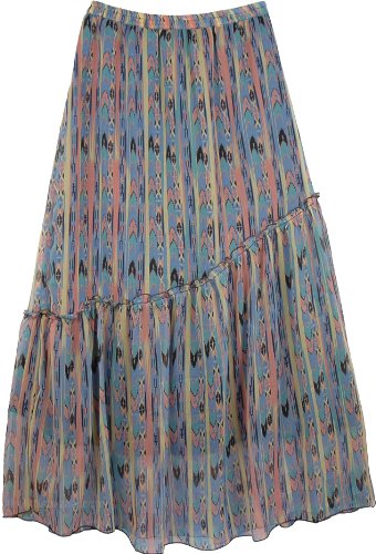 Binding : Apparel Product Description Lynch Full Lined Chiffon Maxi Skirt - A long skirt in a geometric print in 2 horizontal panels that come together to give a nice fall. The plain chiffon gives it a light-weight fall the elastic gives it sizing flexibility. Length:36"; Waist: 24"-34"(Elastic waistband); Material: Chiffon; Care: Dry Clean Only; Stye - 4070; 0