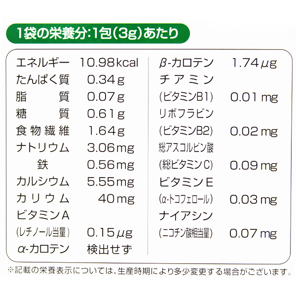 健康青汁 3箱X30包 良質な緑黄色野菜使用! 〓お買い得の3箱セット〓 ~食物繊維の宝庫~ 飲みやすいので大人から子供まで幅広くご利用いただけます。 良質な緑黄色野菜を使った体に嬉しい青汁です。 ・お肌の調子が気になる方 ・野菜不足や栄養バランスが気になる方 ・今までの青汁に満足していない方 ■素材・成分:大麦若葉粉末・果糖・ブドウ糖 ■パッケージ:化粧箱入り ■賞味期限:2015.09.30