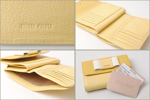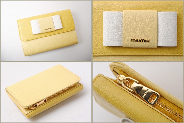 クリスマスプレゼントミュウミュウ 財布miumiu 3折財布 5ML225 MADRAS/マドラスレザー SOLE/LIMONE イエロー/レモンミュウミュウより、人気のマテラッセラインの折財布です。ミュウミュウより、人気の高いマドラスシリーズです。リボンのモチーフがアクセントに!山羊革の型押しレザーで、高級感の漂う、しなやかな肌触り。2層に別れた大きめのコインケースは、小銭が多くなりがちな方にもおすすめです。お買い物時にも、ポケットお札、レシートやチケットなど、区分けしやすいデザインです。商品番号 miu-16-105 ライン サイズ 約:W14×H9.5×D3 (cm) 素材 MADRAS/マドラスレザー カラー SOLE/LIMONE イエロー/レモン 参考定価 - 付属品 箱、ギャランティーカード(直営店印あり) 特徴 【 外側 】○スナップ式開閉部○L字ファスナー式ポケット/2層【 内側 】○札入れ×1○カードポケット×10○オープンポケット×4 商品状態 程度 :ランクN○新品、未使用品。