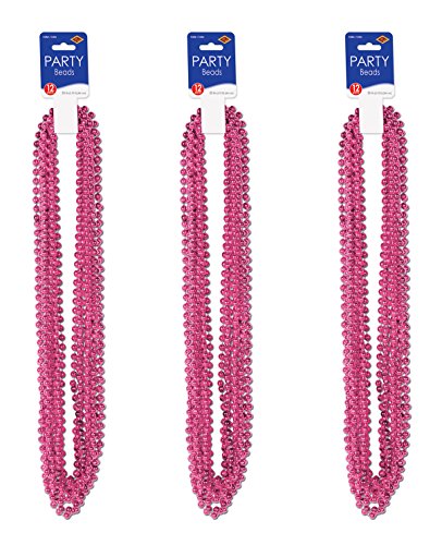 Beistle S50570CAZ3, 36 Piece Party Beads, 33" (Cerise)