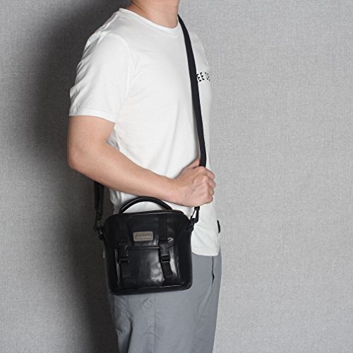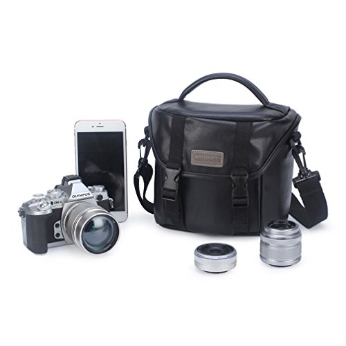 CAISON Synthetic Leather Camera Case Shoulder Bag for Mirrorless Camera Canon EOS M6 M5 M3 M10 / Panasonic Lumix DMC G80 GX8 G7 / Single Lens DSLR Camera NIKON D7500 D5600 D3400 / Canon EOS 200D 1300D