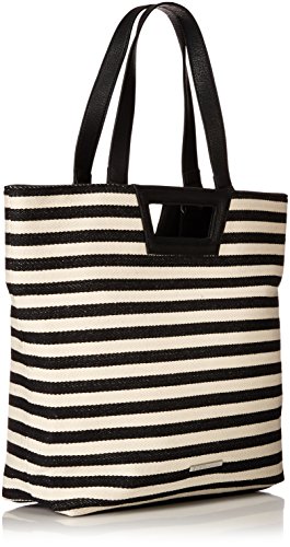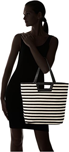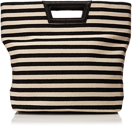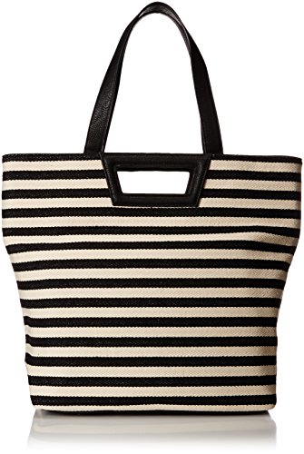 -. Feature : Large striped tote bag featuring top handles and two finger-hold cutouts