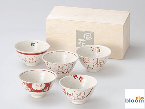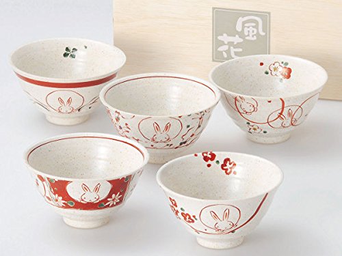 일본 그릇 응원 넷 (아카에)적화꽃 토끼 다완 전 도기 미노도자기(미노야키)
