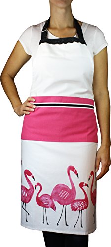 MUkitchen Adjustable Cotton Apron with Large Pockets, 35", Flamingo