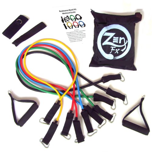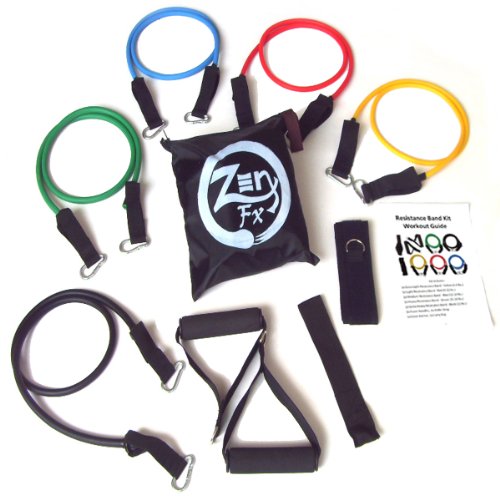 This 10-piece professional exercise resistance tubing band set by Zen FX consists of 5 stackable bands with varying resistance which can be used in multiple variations to achieve varying resistance levels. The fitness tubes are made of high quality natural latex material with excellent strength, elasticity and longevity. The set includes two foam-cushioned handles, an ankle strap, a door strap, a starter guide and a carry bag. The robust reinforced end connectors consisting of metal carabineers mechanically attached to the resistance tubing ensures that the clips will never come loose and snap off like other more flimsy designs of cheaper products.