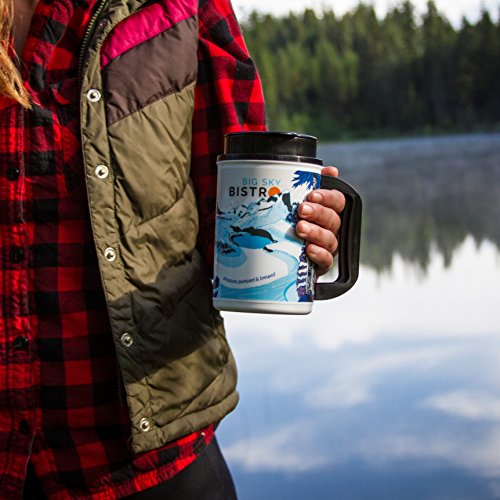 The Big Sky Bistro French Press Travel Mug by Planetary Design is inspired by a passion for the outdoors, and brewing the perfect cup of coffee or tea anywhere.