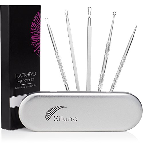 Top product of Siluno Siluno knows what matters and provides you with tools that completely helps. It is an alternative to products of Bestope. The 5-piece set helps you to remove pimples and blackheads in hard to reach places. Your skin care is simplified and more thoroughly than without the Blackhead Remover Set. The items are easy and safe to handle. By corrugations on the handles, a stable grip for the fingers is created. This means that your hands do not slip while you take care of your skin. Wounds because of pressing and wringing pimples is a thing of the past. The stainless steel ensures a long lifetime of your Blackhead Remover Set.